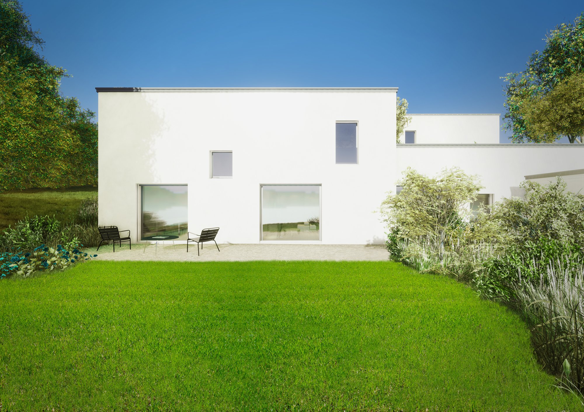 Le concept de la villa triple associe des villas spacieuses agrémentées de jardins privatifs sans vis-à-vis. Cette typologie garantit le respect et l’intimité de chacun. En regroupant les espaces des trois villas en un unique bâtiment, le projet s’inscrit dans une perspective de haute efficience énergétique et de densification des zones déjà construites. La construction se distingue par ces différents niveaux de toitures traduisant à travers cette expression l’indépendance de chaque villa. Les entrées privatives et différenciées des trois propriétés ménagent des accès personalisés pour chacun des biens.
