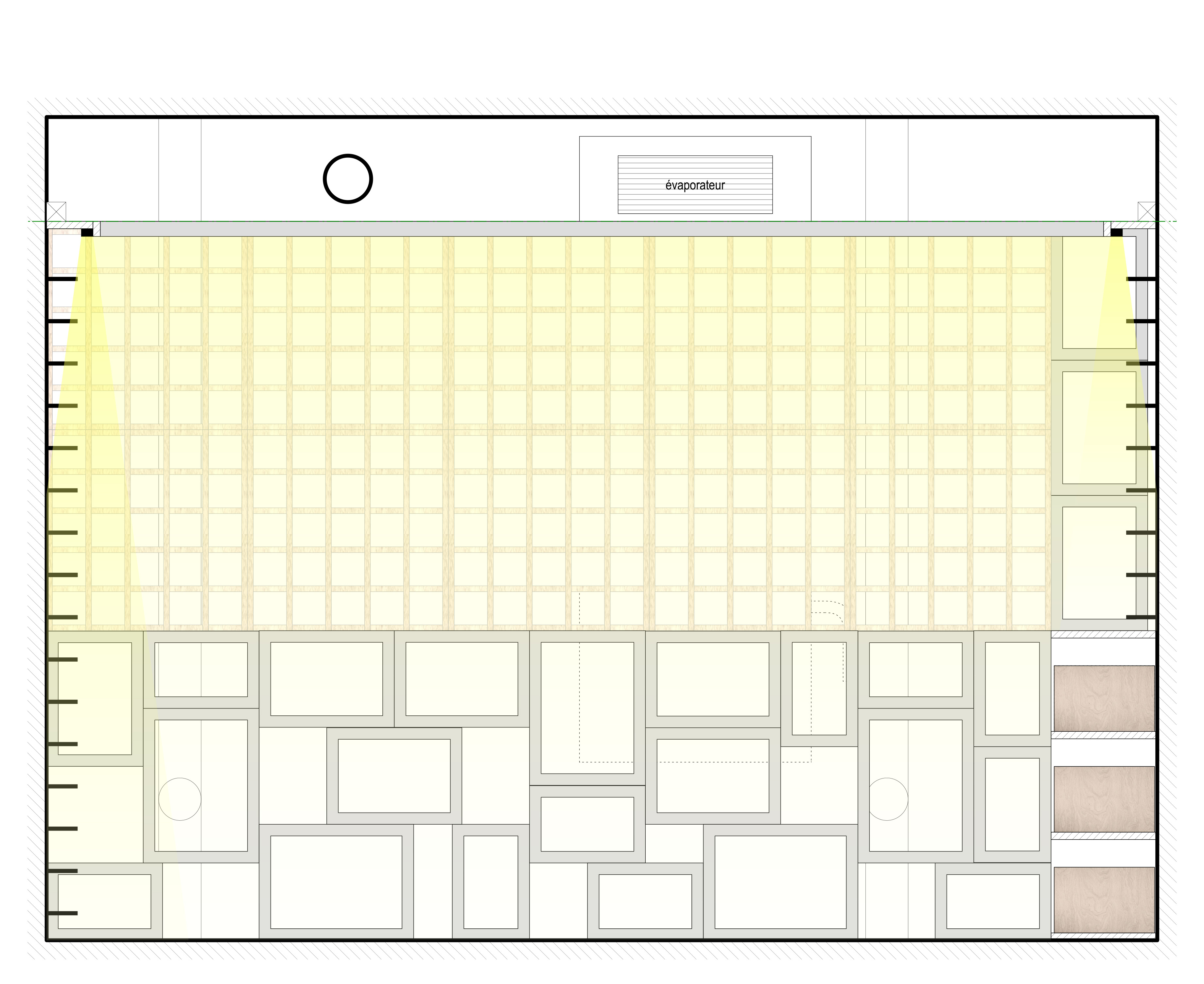 Ce mandat propose l’aménagement d’une cave à vin dans une construction existante. Le programme demandait un espace de garde climatisé pour environ 700 bouteilles. La dissimulation des appareils de production de froid et des conduits de ventilation existants a nécessité un relevé minutieux et une étude précise des tracés techniques. La nouvelle installation offre des conditions idéales pour la garde des vins.